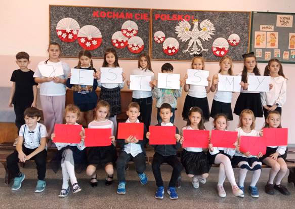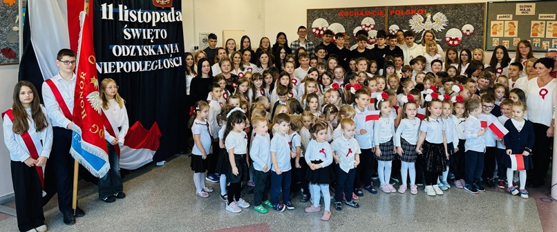Rocznicę odzyskania niepodległości przez Polskę celebrowaliśmy podczas wspólnego spotkania w naszej szkole. W radosnej i podniosłej atmosferze wspólnie śpiewaliśmy pieśni patriotyczne. W montażu słowno-muzycznym zaprezentowała się klasa V, a także koleżanki z klasy III.