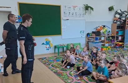 Dnia 4 września odbyło się spotkanie z przedstawicielami policji, które dotyczyło bezpieczeństwa dzieci na drodze. Na spotkaniu zostały omówione zasady bezpiecznego korzystania z przejść dla pieszych, a także obowiązek noszenia elementów odblaskowych. Zwrócono także uwagę na prawidłowe zachowania podczas jazdy samochodem oraz unikanie kontaktów z nieznajomymi.